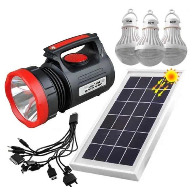 Портативна система освітлення Yajia YJ-1908 Ліхтар + 3 LED лампи + сонячна панель + FM 7000 mAh (7_00968)
